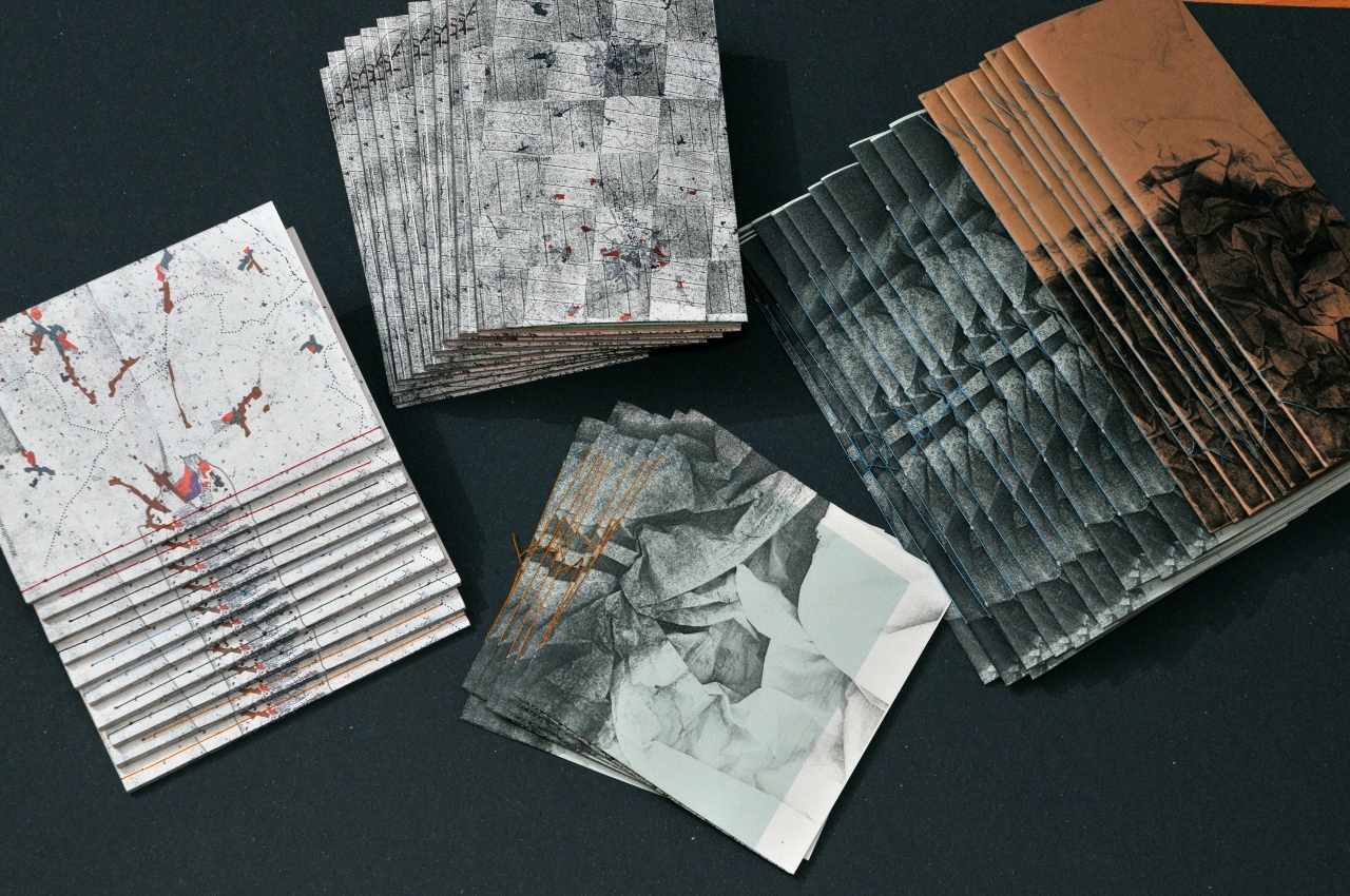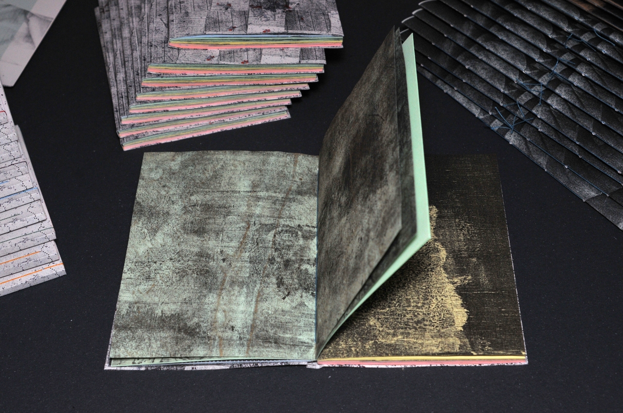 Ci-dessous, vous trouverez des photographies de quelques une des pages et des 5 carnets différents, produit en 10 exemplaires chacun.