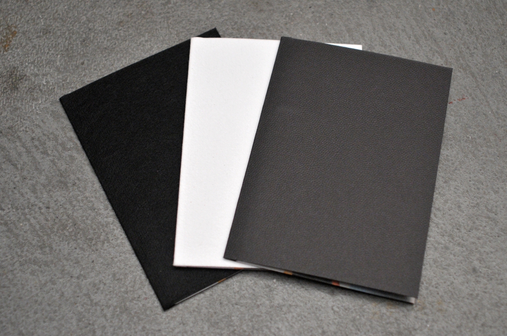 – Impression sur papier photo Brother, mat 145g/m² (BP60M), Pochette en papier gaufré « type chagrin » (Je cherche la source…).
