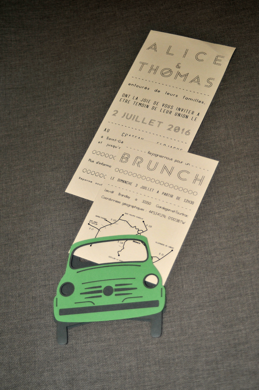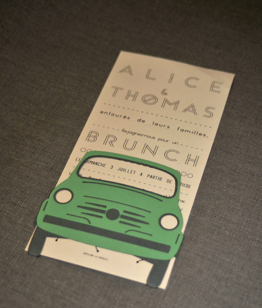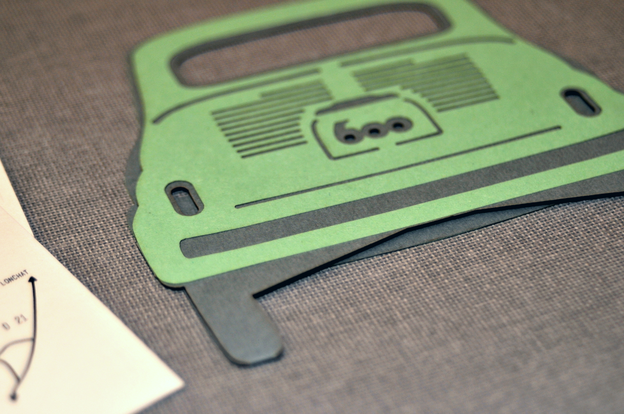 carte collage découpe laser faire-part Fedrigoni Fiat 600 lasercut mariage