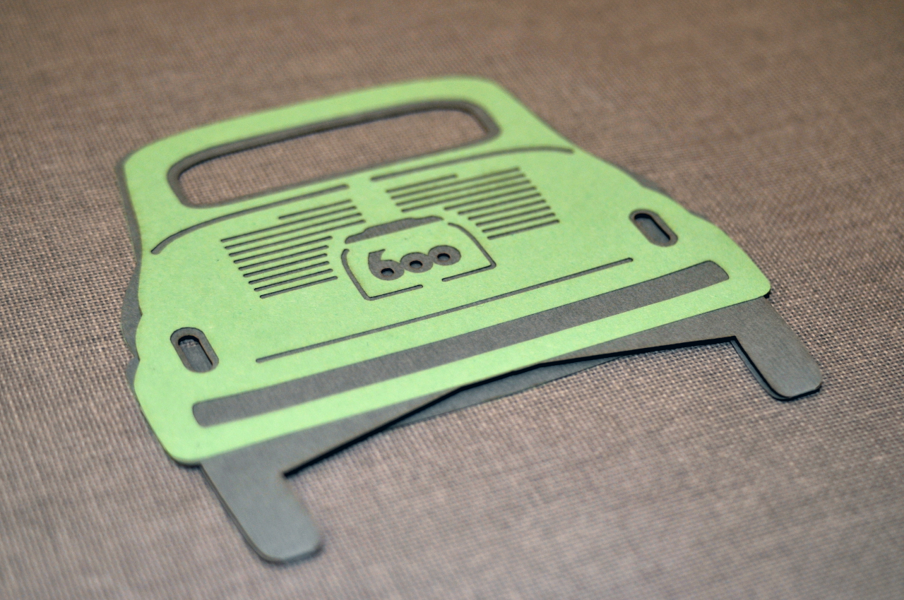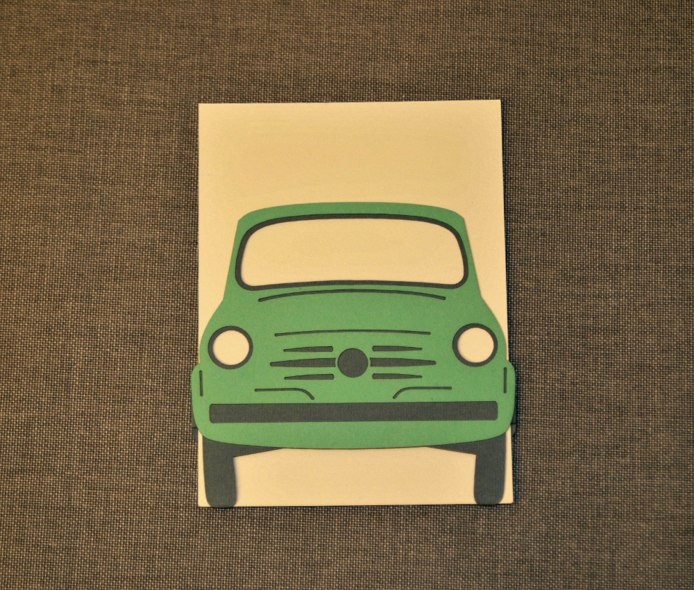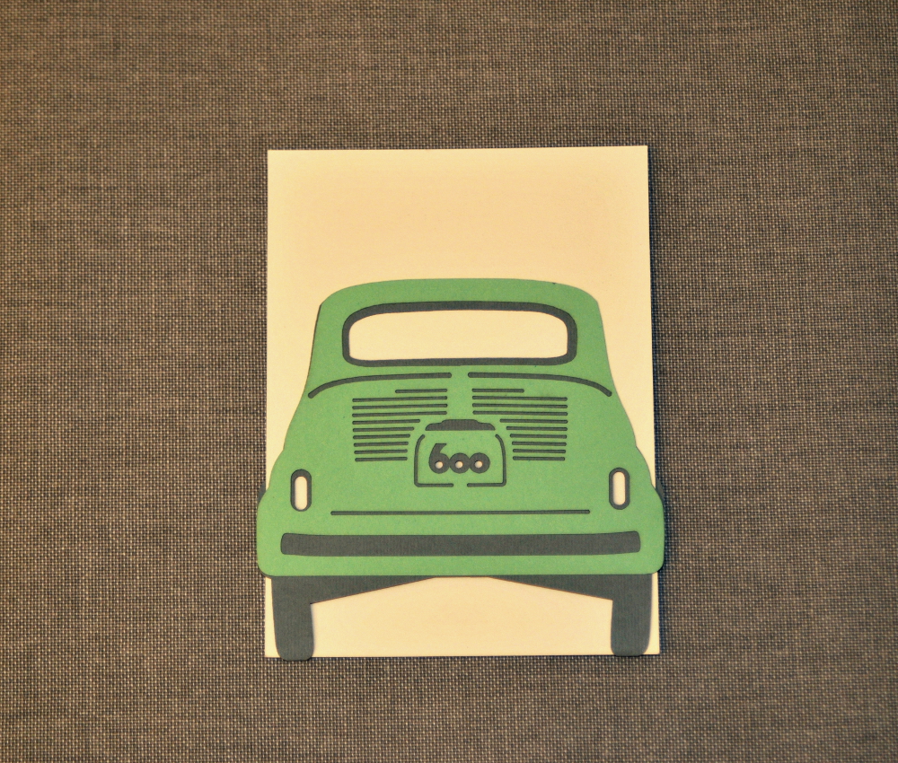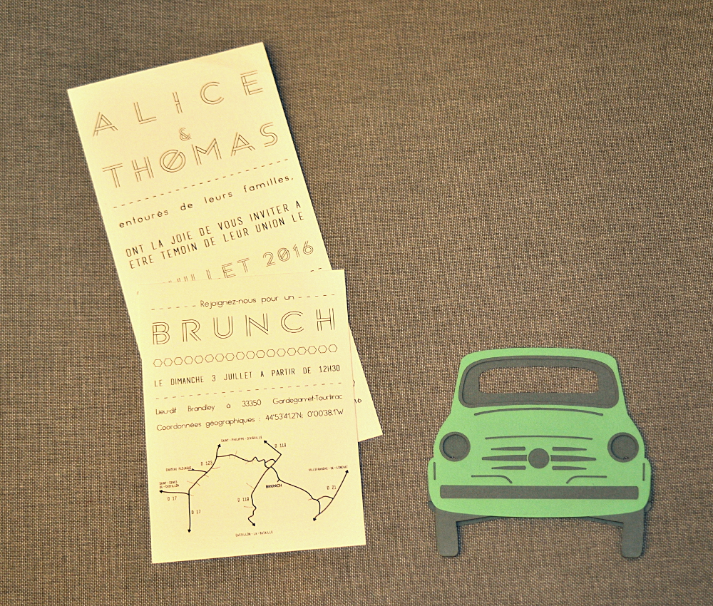carte collage découpe laser faire-part Fedrigoni Fiat 600 lasercut mariage